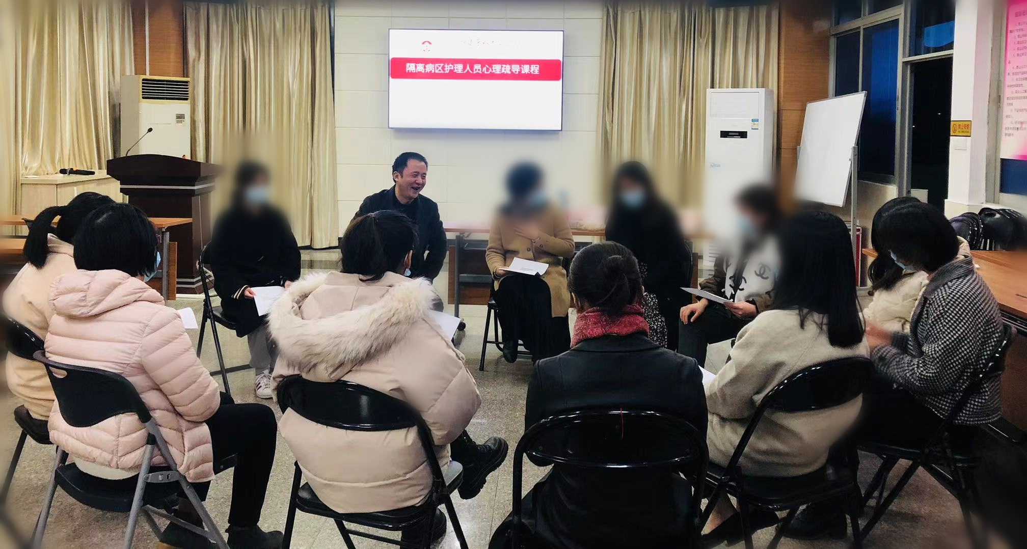 为进一步提高临床医疗质量和工作效率,确保医疗工作的良性运转,及时监测、调整医护人员心理健康水平,识别、应对、处理自身及隔离人员的心理压力,应福建医科大学附属第二医院邀请,我院心理科“天使心晴”团队对该院隔离病区护士开展主题性心理健康活动。此次活动采用授课结合主题性团体体验的形式开展,参考相关人员的主要需求及课程前心理测评结果和情况摸底,进行针对性的心理疏导和支持,同时教授护士压力处理相关技能。